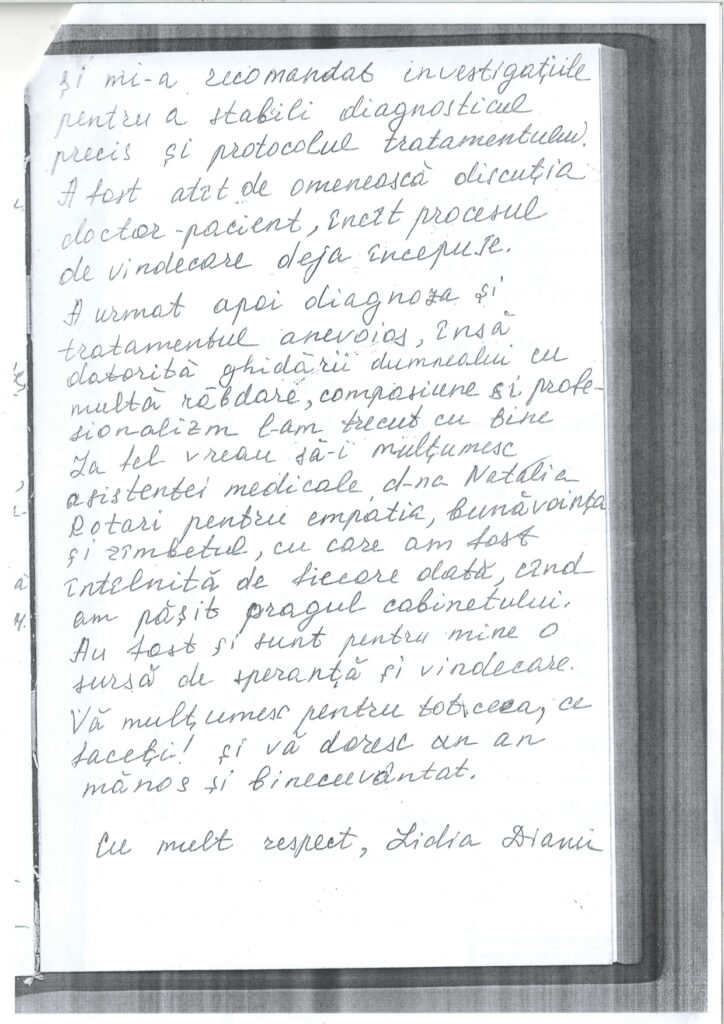 Recunoștința pacienților noștri